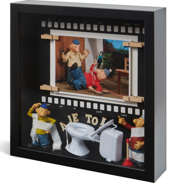 Boks kolekcjonerski z aranżowaną według autorskiego pomysłu scenką z legendarnej animacji Pat i Mat znanej także jako Sąsiedzi zatytułowany : AWARIA